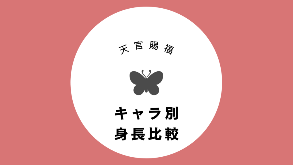 天官賜福キャラの身長比較したったーをしました。 なお、各キャラの身長は、墨香銅臭先生インタビュー・40のQ&A(日本語訳)を参考にさせていただきました。 花城、圧倒的高身長…!!!さすが、俺たちの城主! 殿下と並んだときの身長差が最高ですねぇ...