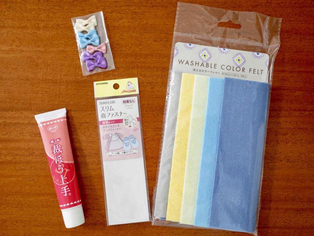 自作が確実なことはわかっていましたが、「簡単なぬい服の作り方」を見ても簡単そうには思えず、なんとかして縫わない方法を考え、ボンドや両面テープを使う方法に辿り着きました。