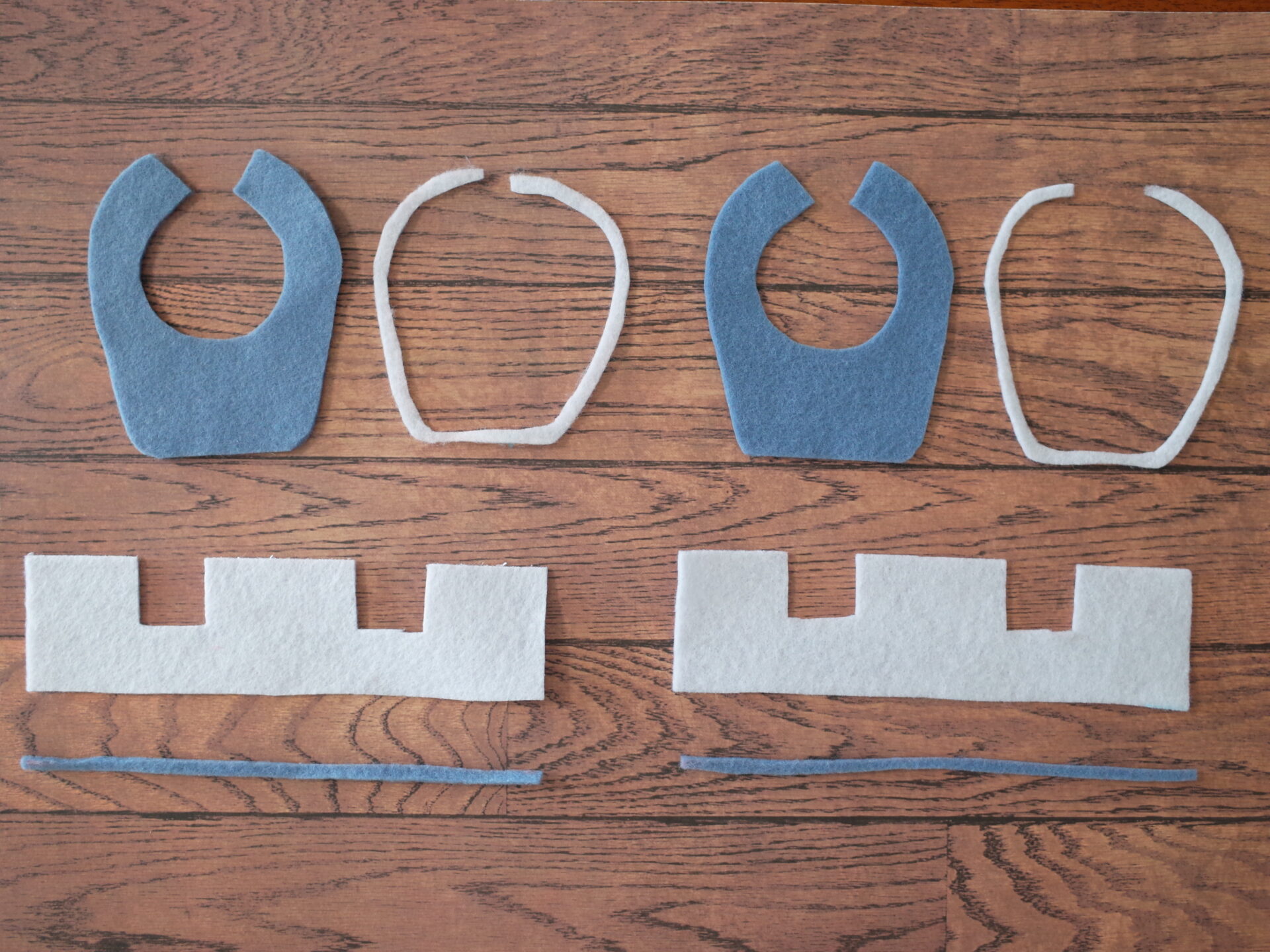 下図はセーラーカラーとライン、巻きつけ用ベストとラインをカットした写真です。