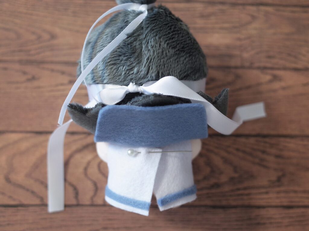 カットした各パーツをボンドで貼り付け後、ぬいに仮留めしてざっくりとイメージ確認。