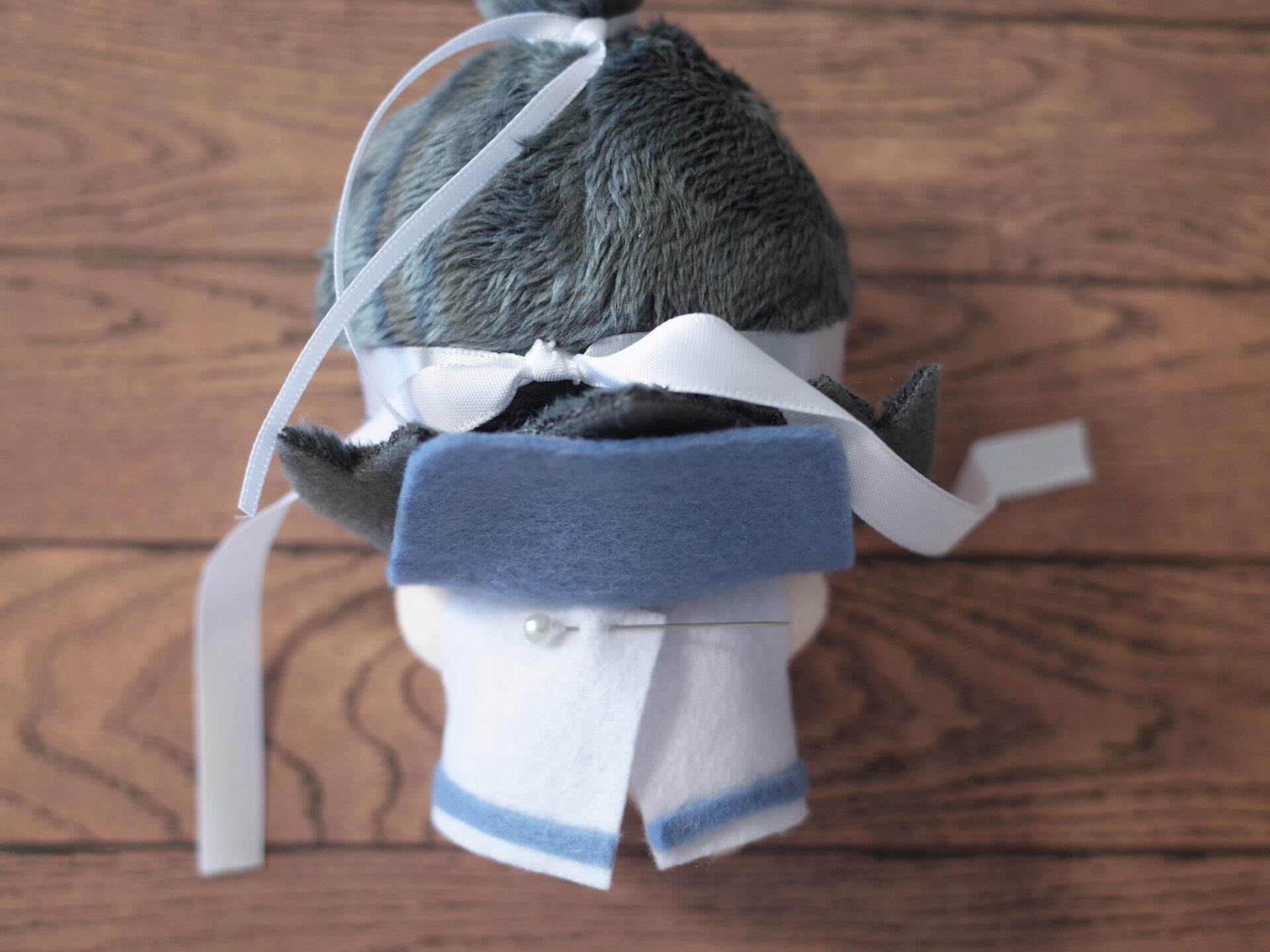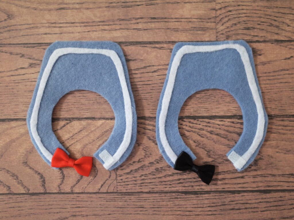 最終的に前留めにして留め部分をリボンで隠していますが、リボン裏と襟にマジックテープを貼り付ける作業が細かくて。